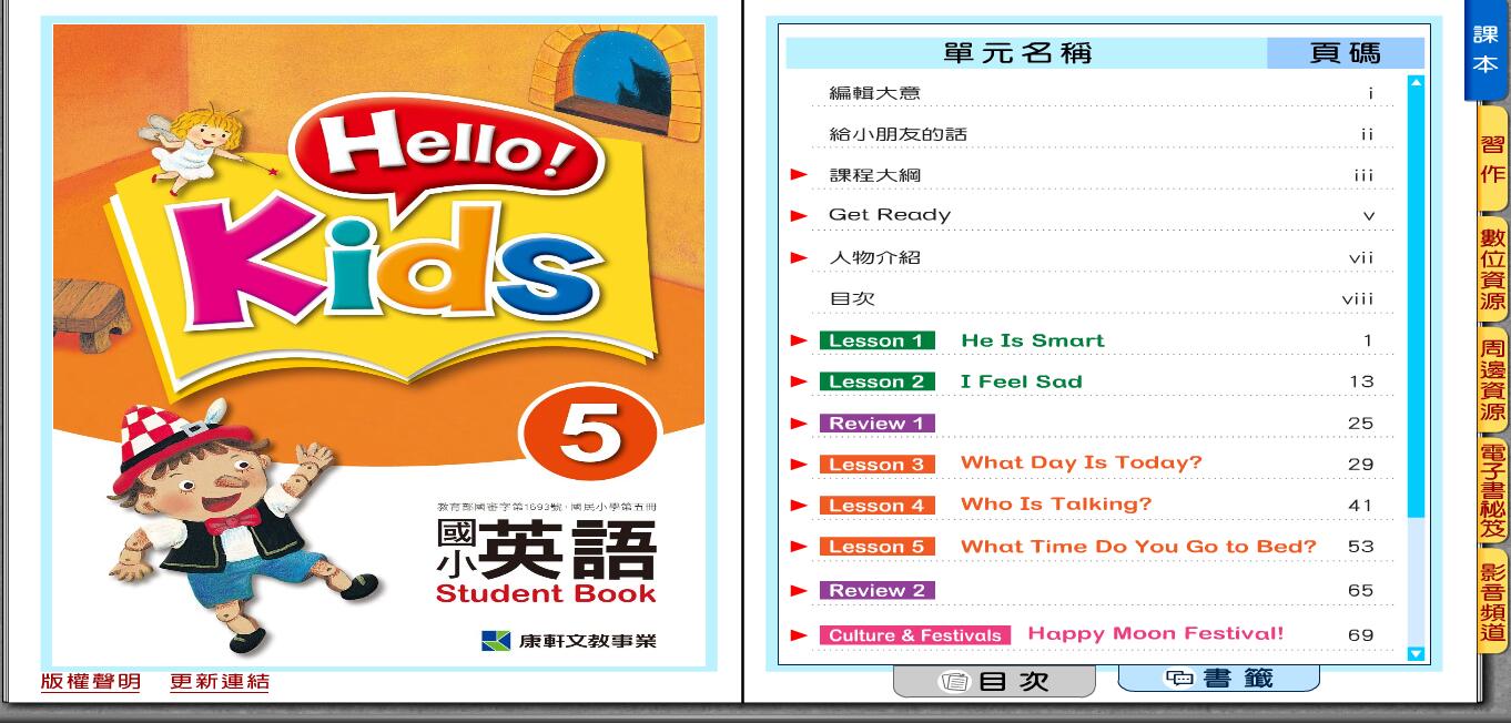 軟體名稱: 104年度第五冊康軒教師版 Hello kids super e-books 5