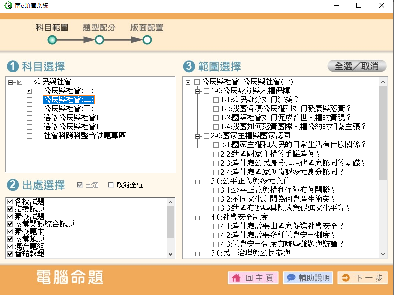 111學年下學期 高中命題光碟 南一版 公民與社會科(1.2.3.選修1.Ⅱ冊) 1-3年級 題庫光碟