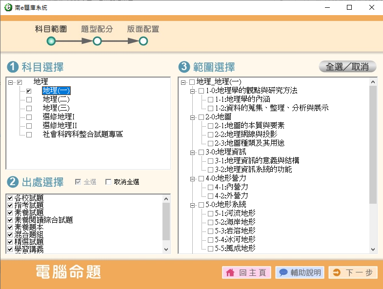 軟體名稱:111學年下學期 高中命題光碟 南一版 地理科(1.2.3.選修Ⅰ.Ⅱ冊) 1-3年級