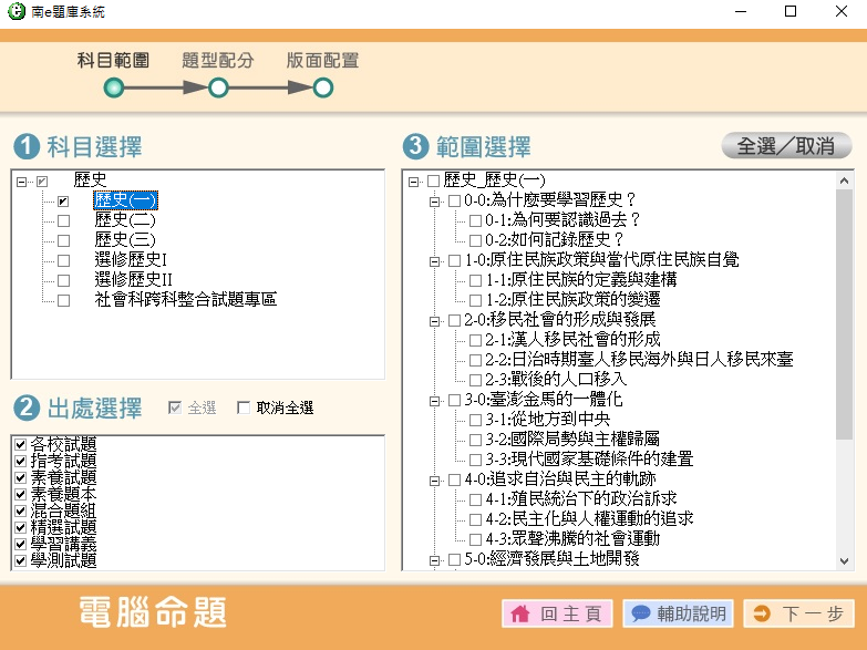 軟體名稱:111學年下學期 高中命題光碟 南一版 歷史科(1.2.3.選修Ⅰ.Ⅱ冊) 1-3年級