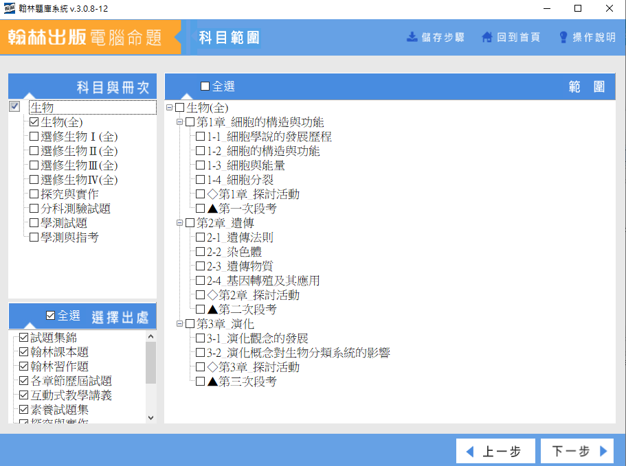 軟體名稱:111學年下學期 高中命題光碟 翰林版 生物科(全.選修Ⅰ-Ⅳ冊) 1-3年級(108課綱) 題庫光碟