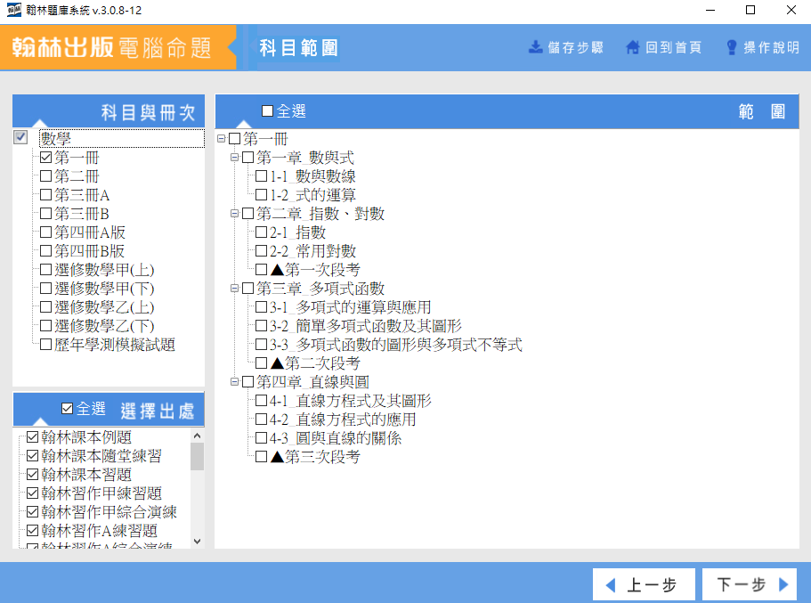 軟體名稱:111學年下學期 高中命題光碟 翰林版 數學科(1.2.3A.3B.4A.4B.選修甲.乙(上.下)) 1-3年級(108課綱) 題庫光碟