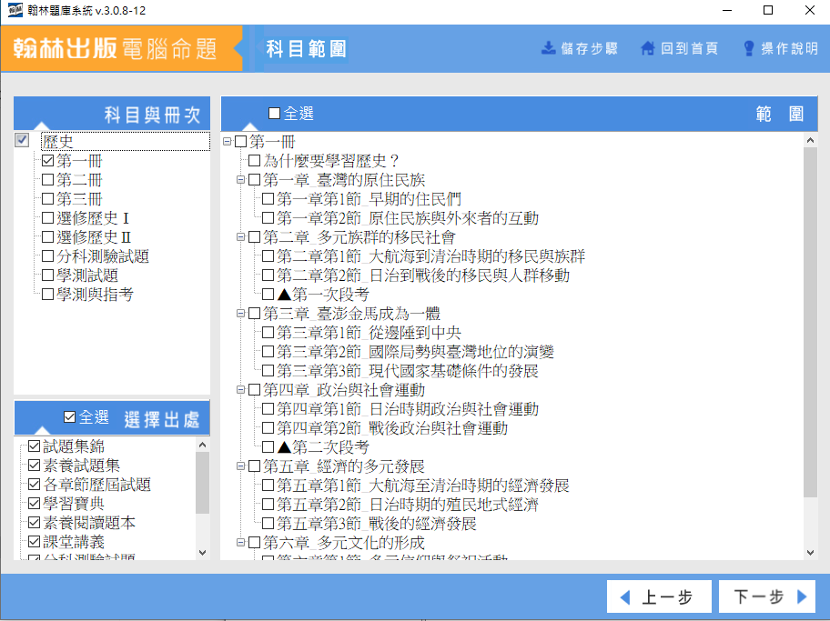 軟體名稱:111學年下學期 高中命題光碟 翰林版 歷史科(1.2.3.選修Ⅰ.選修Ⅱ冊) 1-3年級(108課綱) 題庫光碟