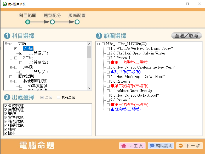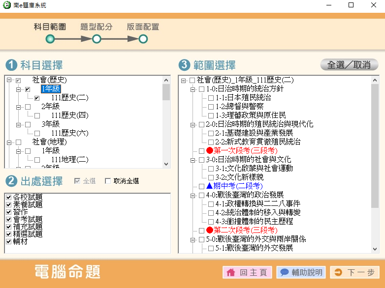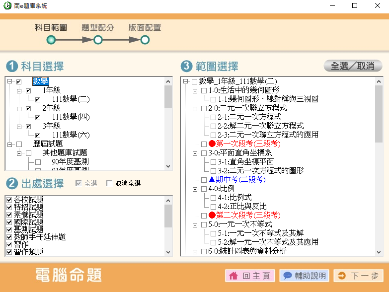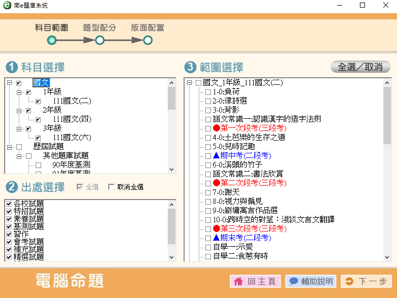 軟體名稱: 111學年下學期 國中命題光碟 南一版 1-3年級 全科目、全領域