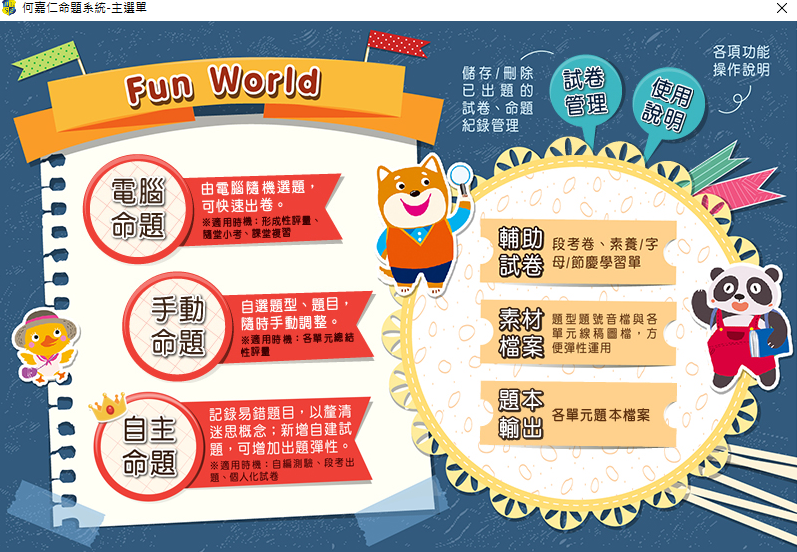 軟體名稱:111學年下學期 國小命題光碟 何嘉仁 英文 Fun World (第1.2.3.4冊) 題庫光碟