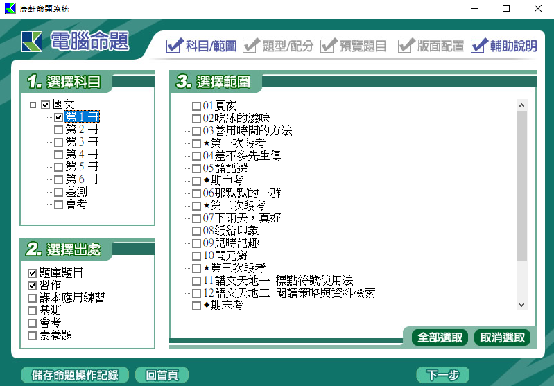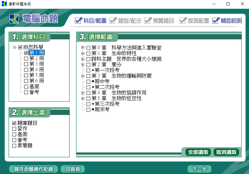 軟體名稱: 112學年下學期 國中命題光碟 康軒版 1-3年級 (含108課綱)(全年級、全領域) 題庫光碟