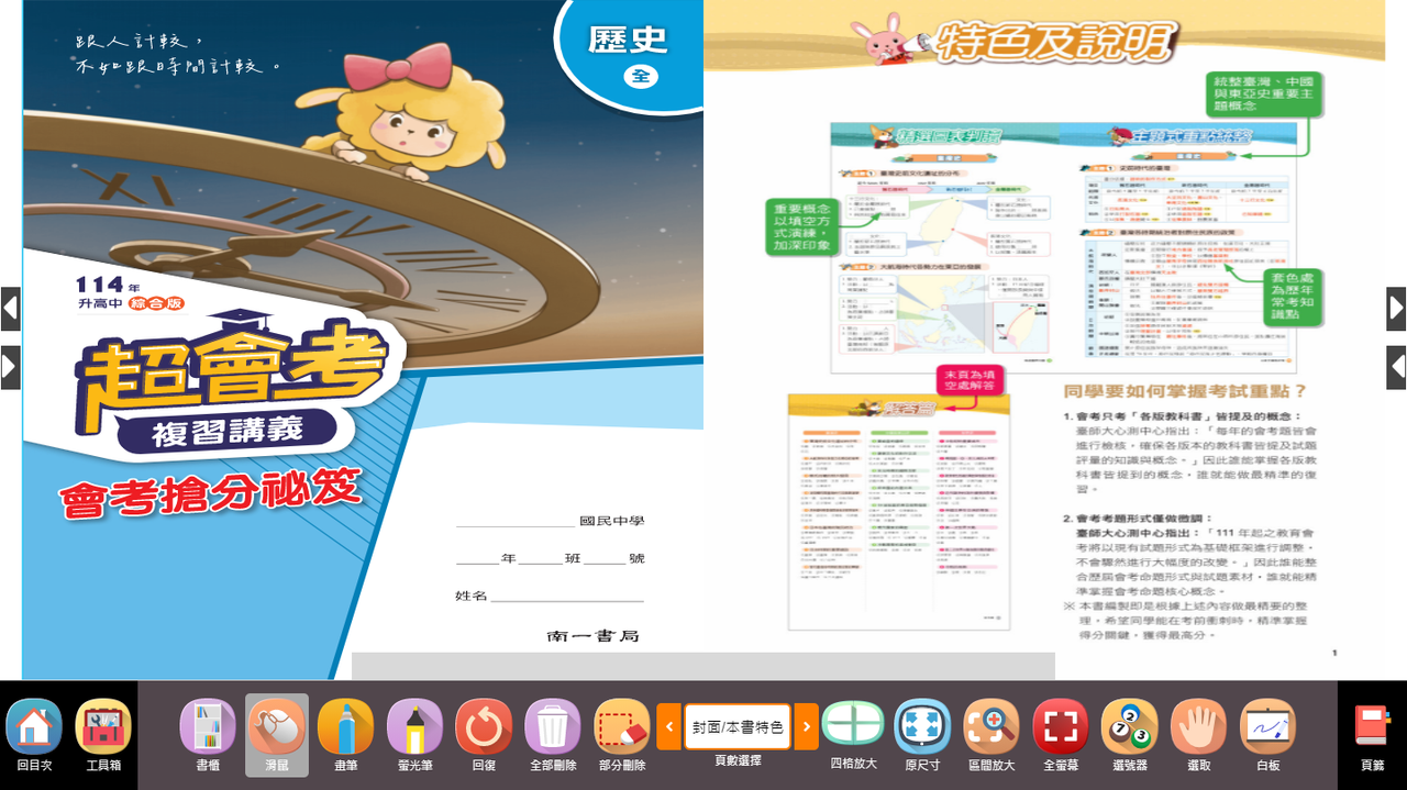 軟體名稱: 114學年上學期 升高中 南一版 超會考復習講義-歷史(全)(108課綱) 電子書教學光碟