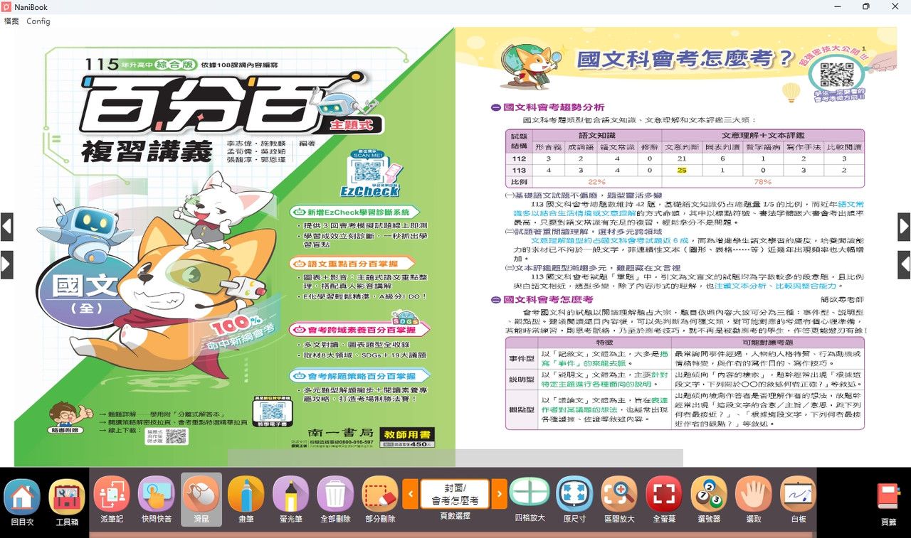 軟體名稱: 115學年 升高中 南一版 百分百複習講義-國文(全)(108課綱) 電子書教學