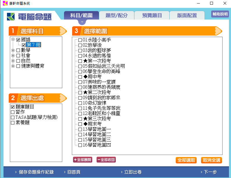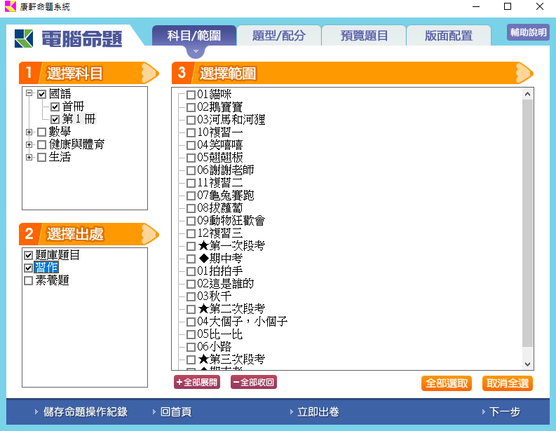 軟體名稱: 114學年上學期 國小命題光碟 康軒版 1-6年級 (全年級、全領域) 題庫