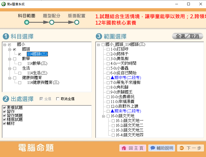 皆可以手動命題或電腦命題,
