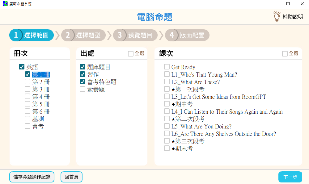 軟體名稱: 114學年上學期 國中命題光碟 康軒版 1-3年級 英文(108課綱)